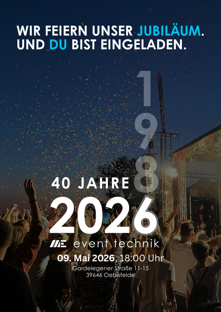 09.05.2026, 18:00 40 Jahre ME Event Technik, 39646 Oebisfelde … großes Jubiläumsfest und alle können kommen!